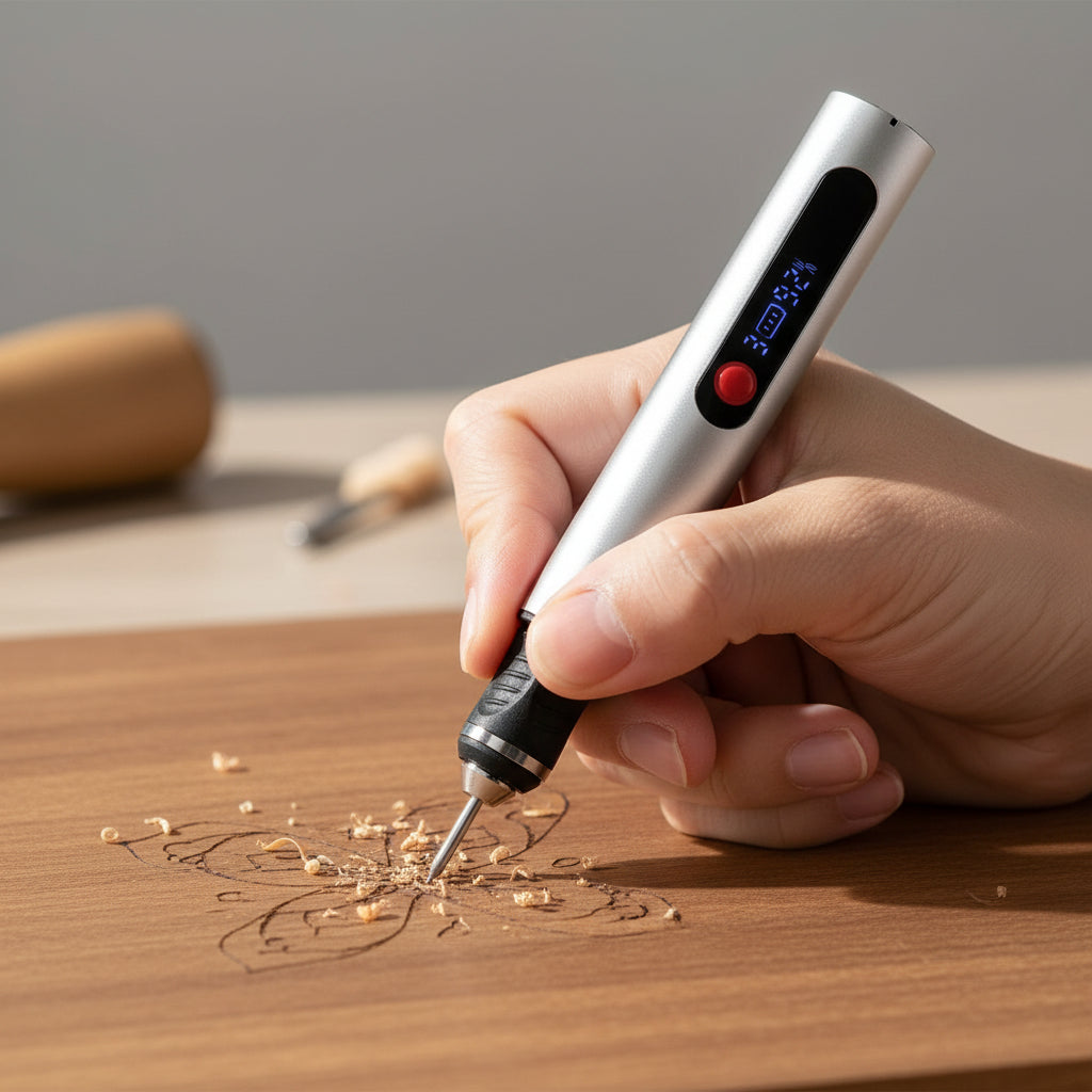 Ein leiser, vibrationsarmer Präzisions-Gravierstift, der dir beim Arbeiten Ruhe, Kontrolle und echte Freude zurückgibt – ganz ohne Vorkenntnisse.