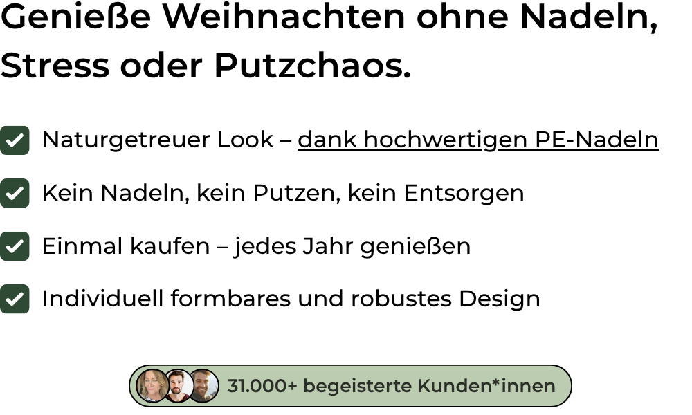 Kein Nadeln. Kein Putzen. Kein Chaos.