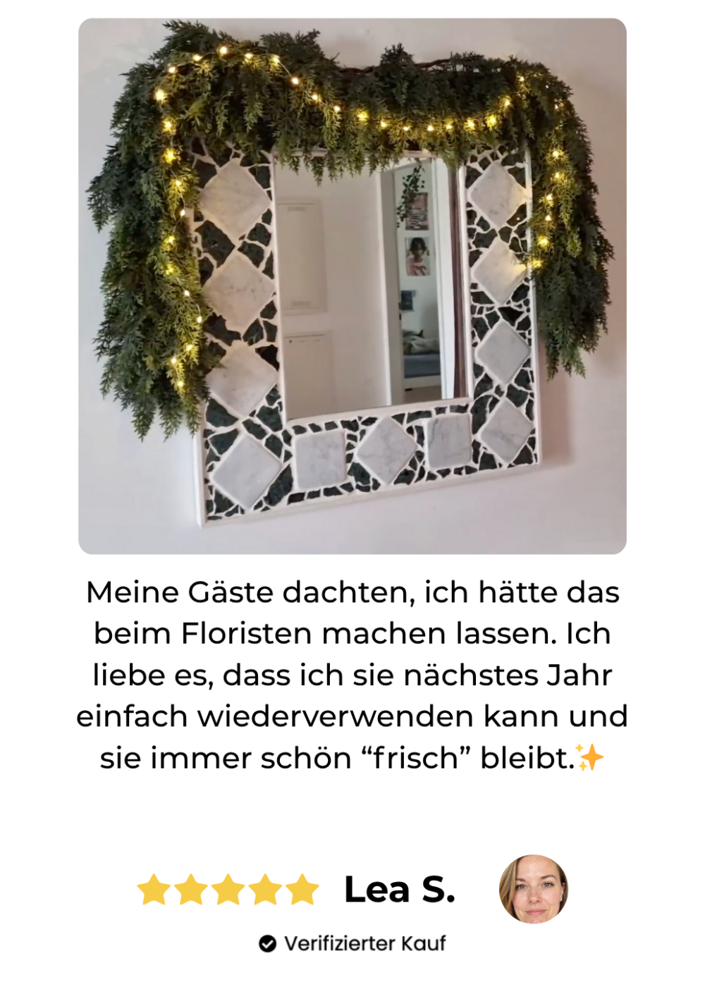 Die EdelGirlande™ ist langlebig & nachhaltig – du nutzt sie Jahr für Jahr wieder, sparst dir Zeit, Geld und schonst echte Bäume. 🎄