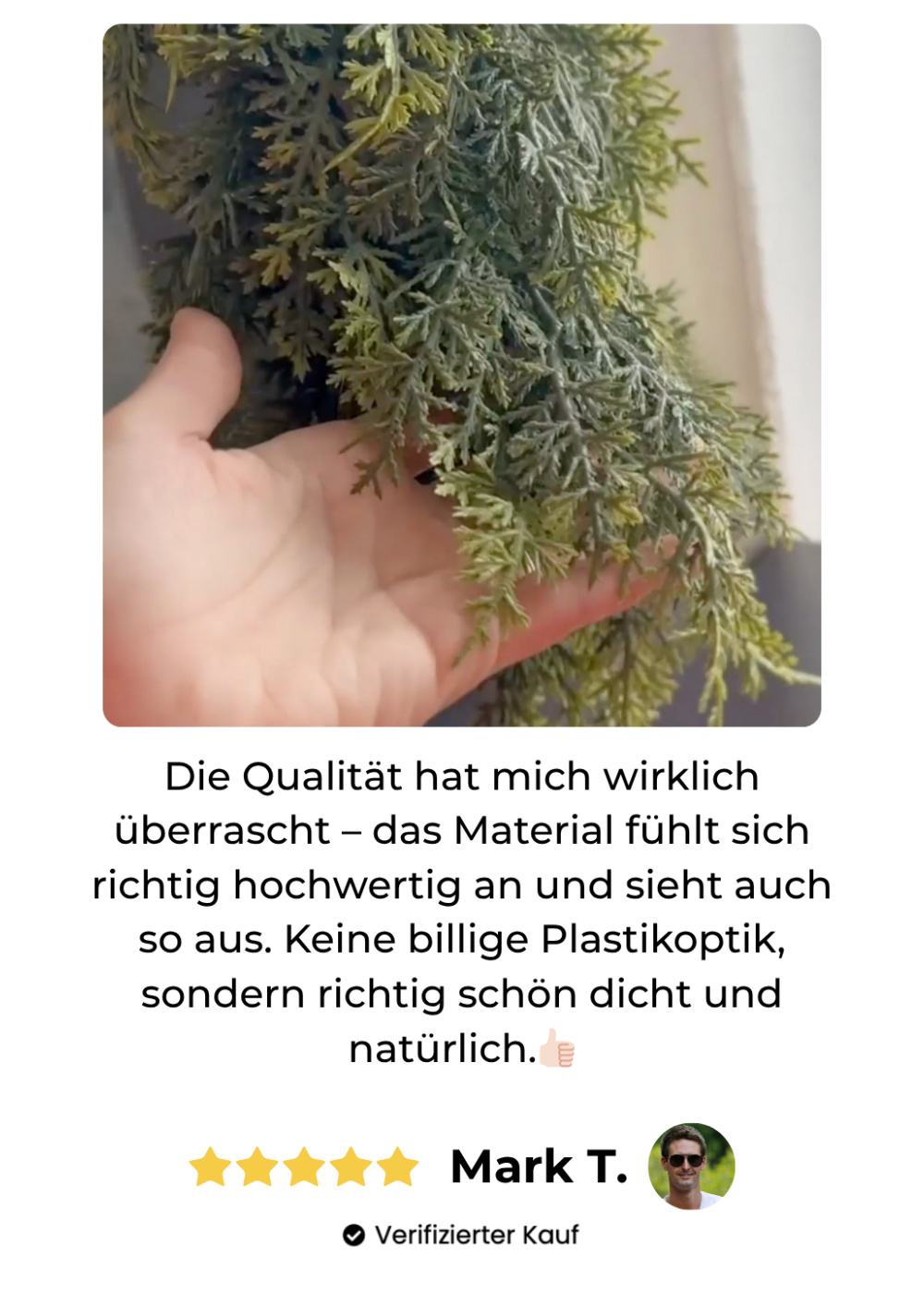 Die EdelGirlande™ ist kein gewöhnlicher Zedernzweig – sie bringt Ruhe, Qualität und festliche Stimmung in dein Zuhause.