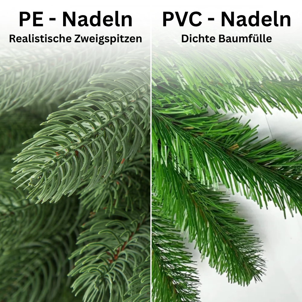 Die äußeren Spitzen bestehen aus hochwertigem PE-Spritzguss, der echten Tannennadeln täuschend ähnlich sieht – in Farbe, Form und Haptik.