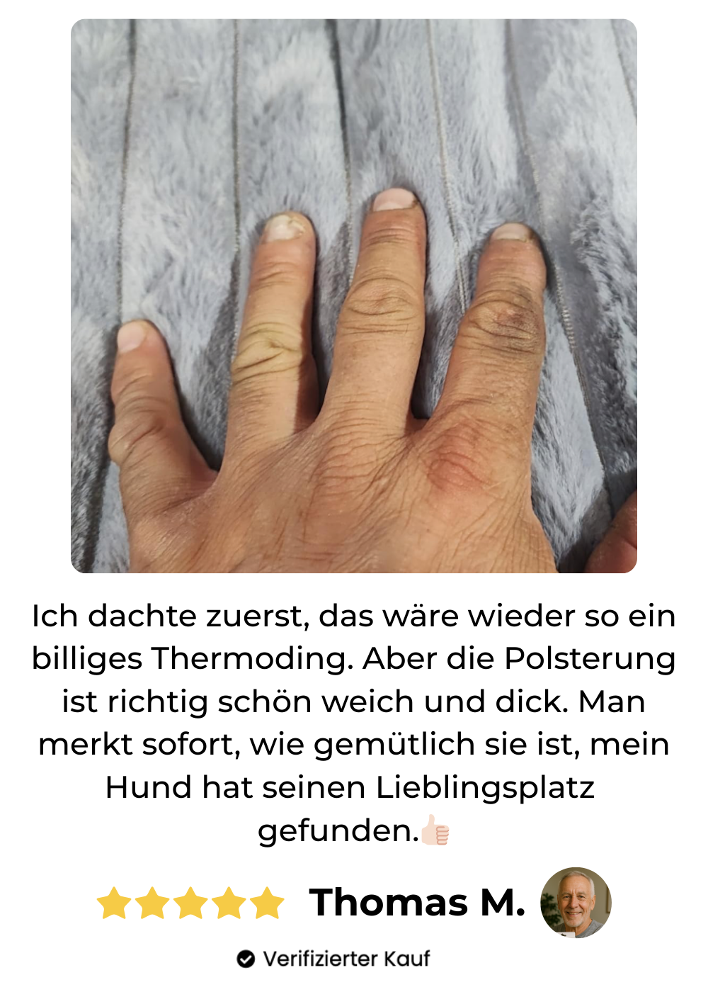 Ja, absolut. Die extraweiche Polsterung entlastet die Gelenke und eignet sich perfekt für Senior-Hunde oder Tiere mit Arthrose oder empfindlichen Knochen. Die natürliche Wärme fördert zusätzlich die Durchblutung und macht das Liegen deutlich angenehmer – viele Kund*innen berichten von sichtbar entspannteren Tieren.