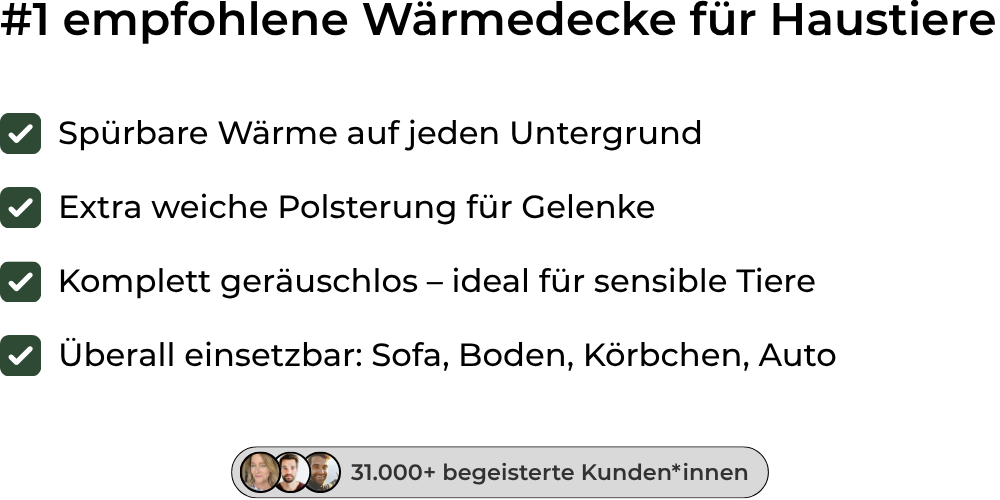 Viele Tierbesitzer und Experten aus der Tierpflege empfehlen genau diesen natürlichen, sicheren Wärmeeffekt. Eine kleine Entscheidung für dich – ein riesiger Unterschied für dein Haustier.
